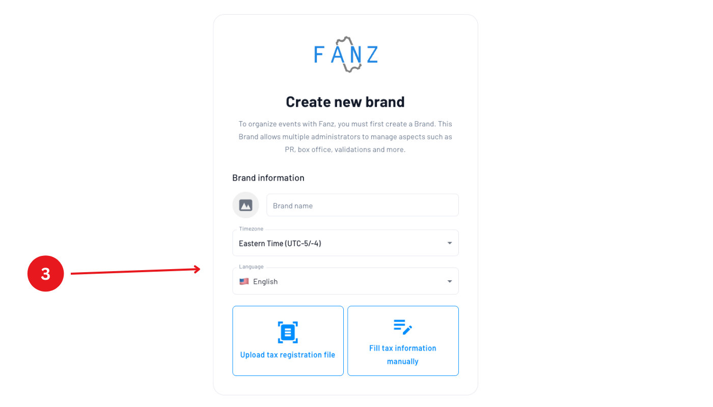 Once you sign in for the first time, the system will ask you to create your first brand.