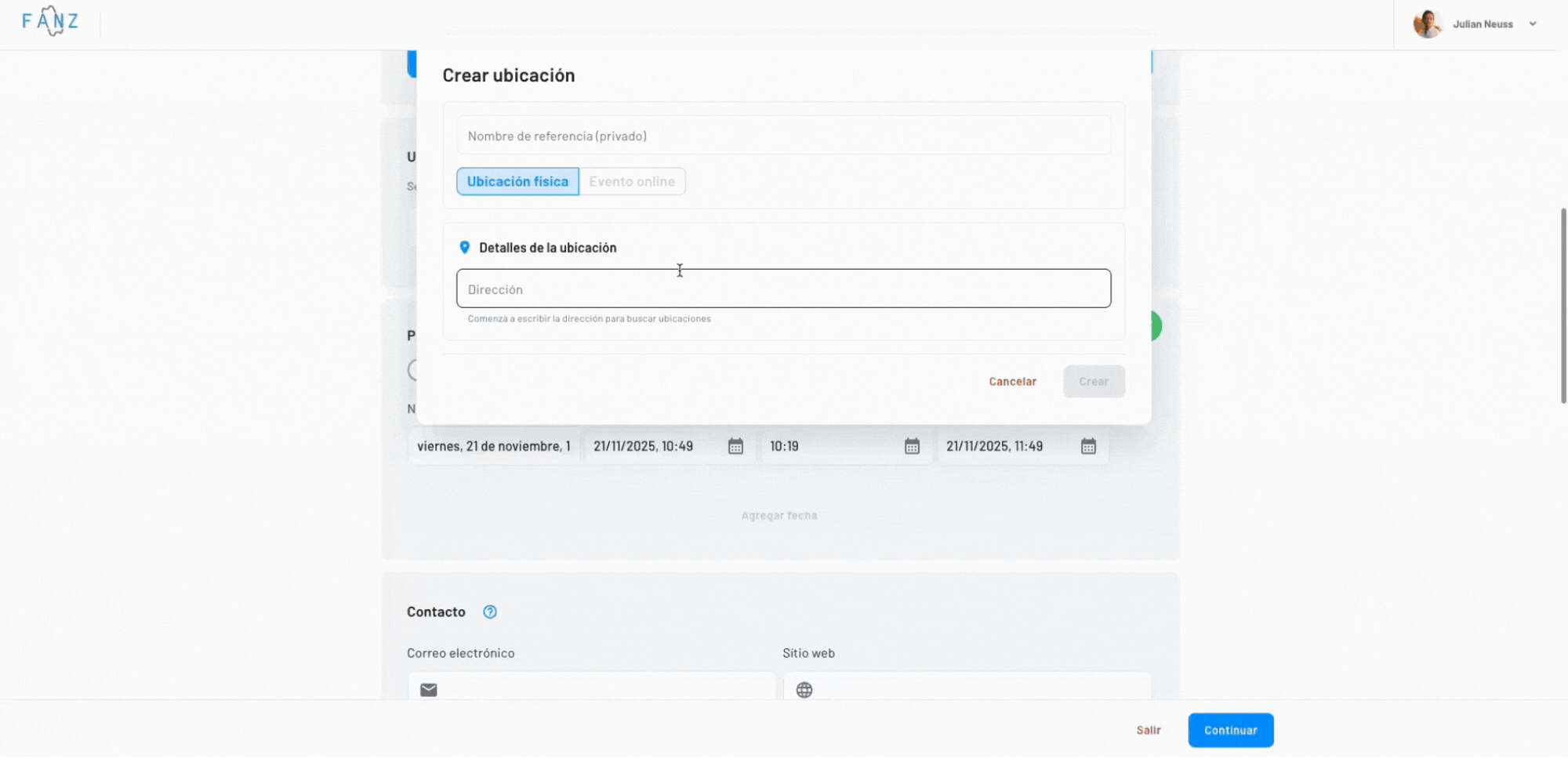 Guardar ubicaciones: Una vez que crees una ubicación, queda guardada y la podés reutilizar en eventos futuros.