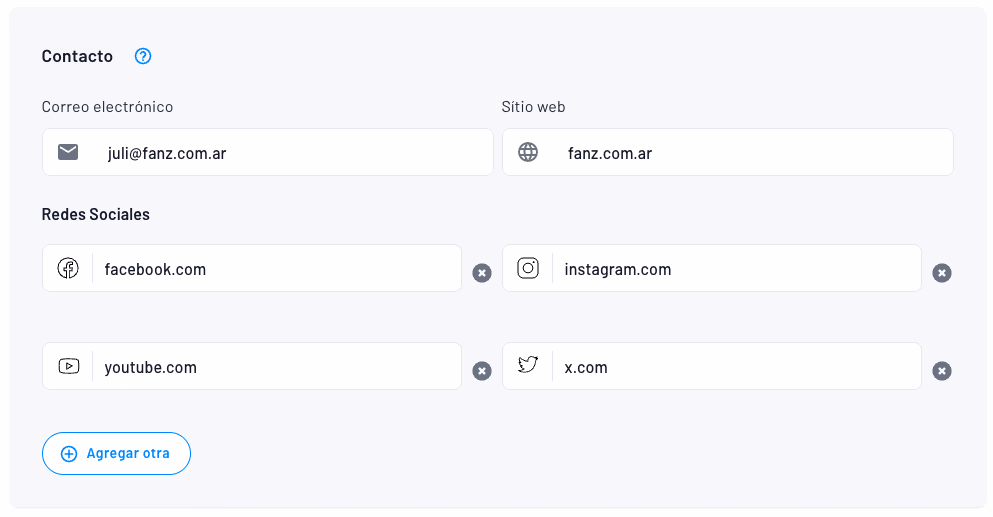 - Información de contacto – Email, teléfono, redes sociales (opcional)