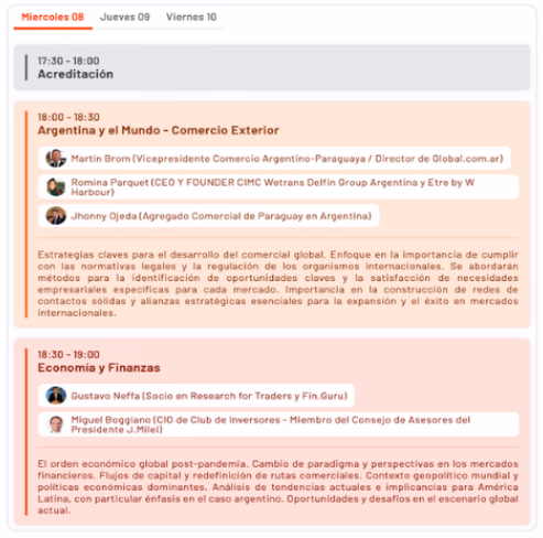 Perfecta para conferencias, congresos o eventos con múltiples actividades. Podés agregar: