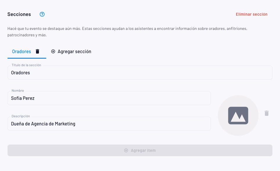 Para mostrar sponsors, auspiciantes, oradores o cualquier contenido adicional con imágenes y texto.