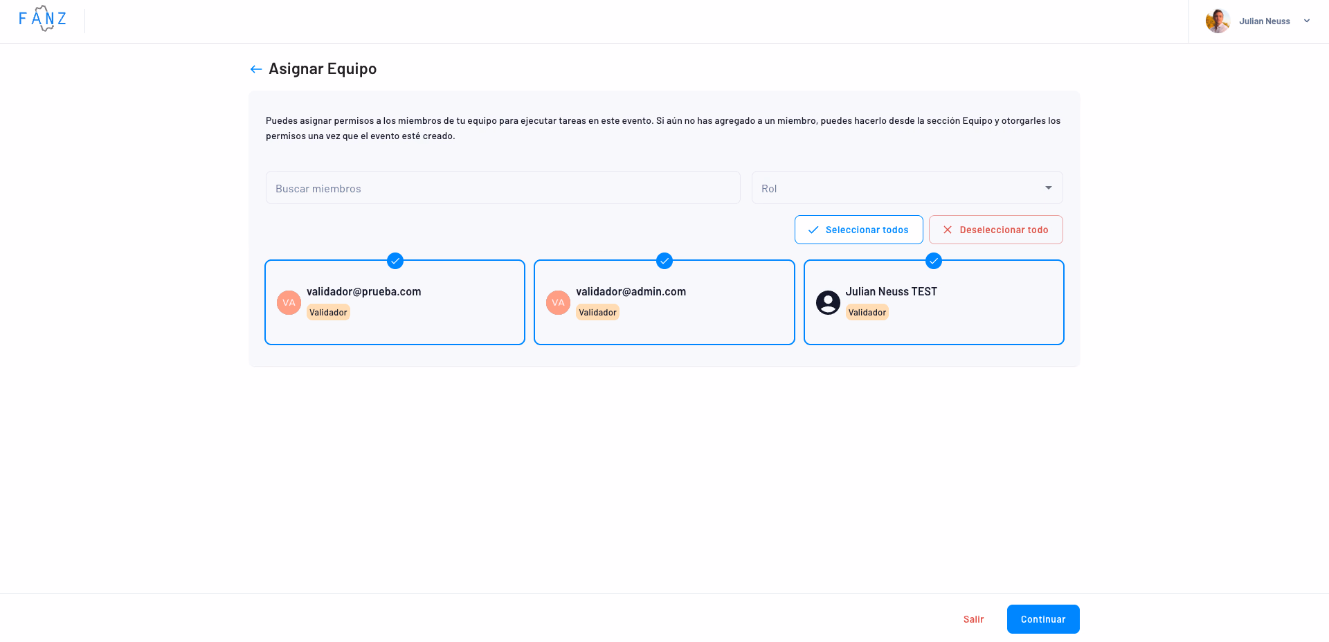 Nota: Este paso solo aparece si ya tenés miembros en tu equipo. Si es tu primer evento y todavía no invitaste a nadie, probablemente no veas esta opción.